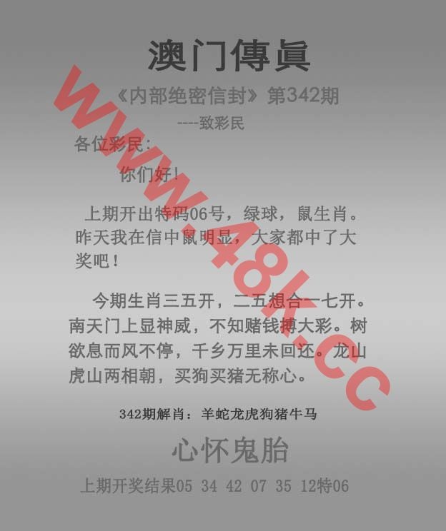 | 342期: ⑥肖 | 兔鸡羊虎牛马 | ????中 |