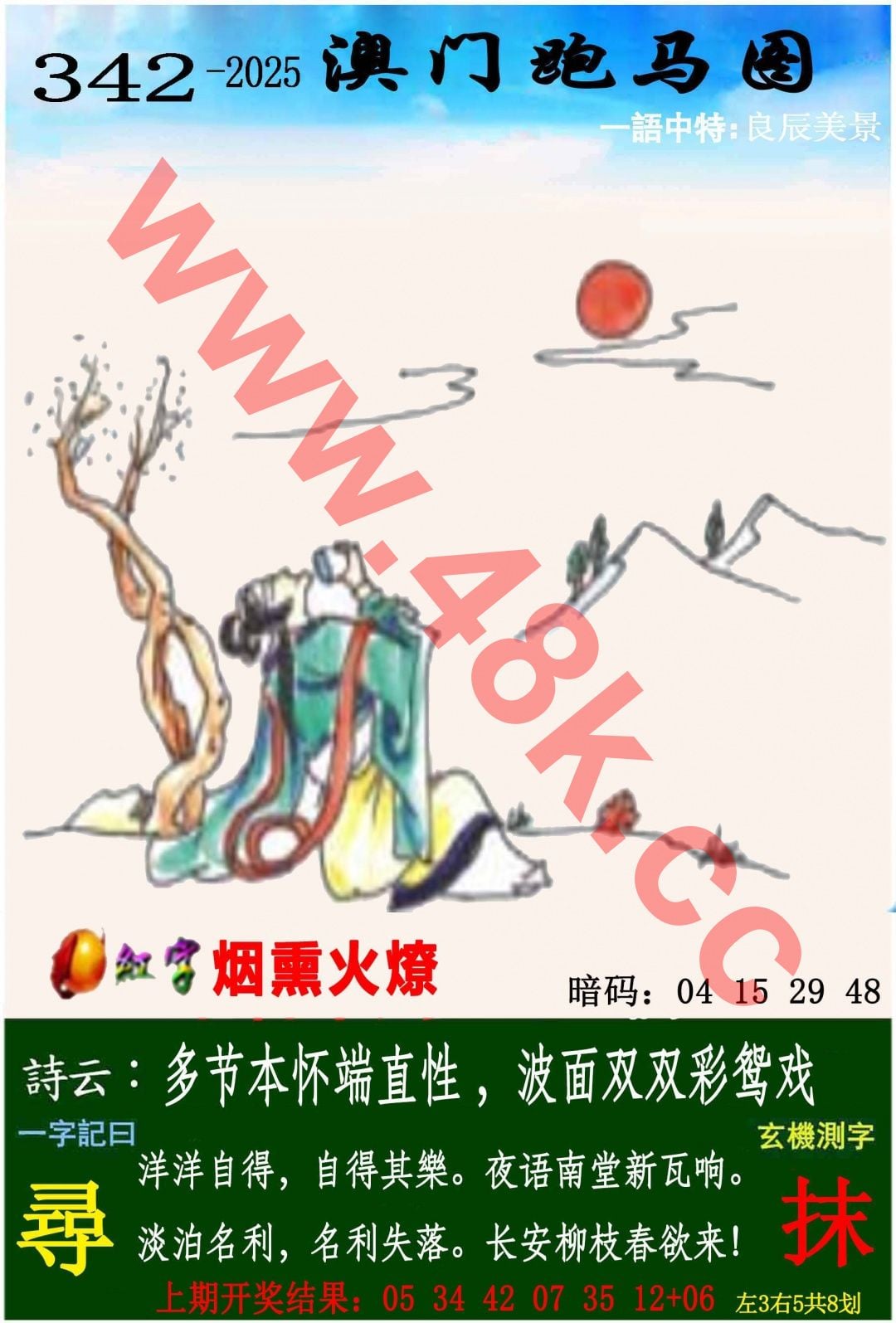 2025-342期一字記之曰:《尋》 洋洋自得,自得其樂。夜语南堂新瓦响 淡泊名利,名利失落。长安柳枝春欲来 【抹】